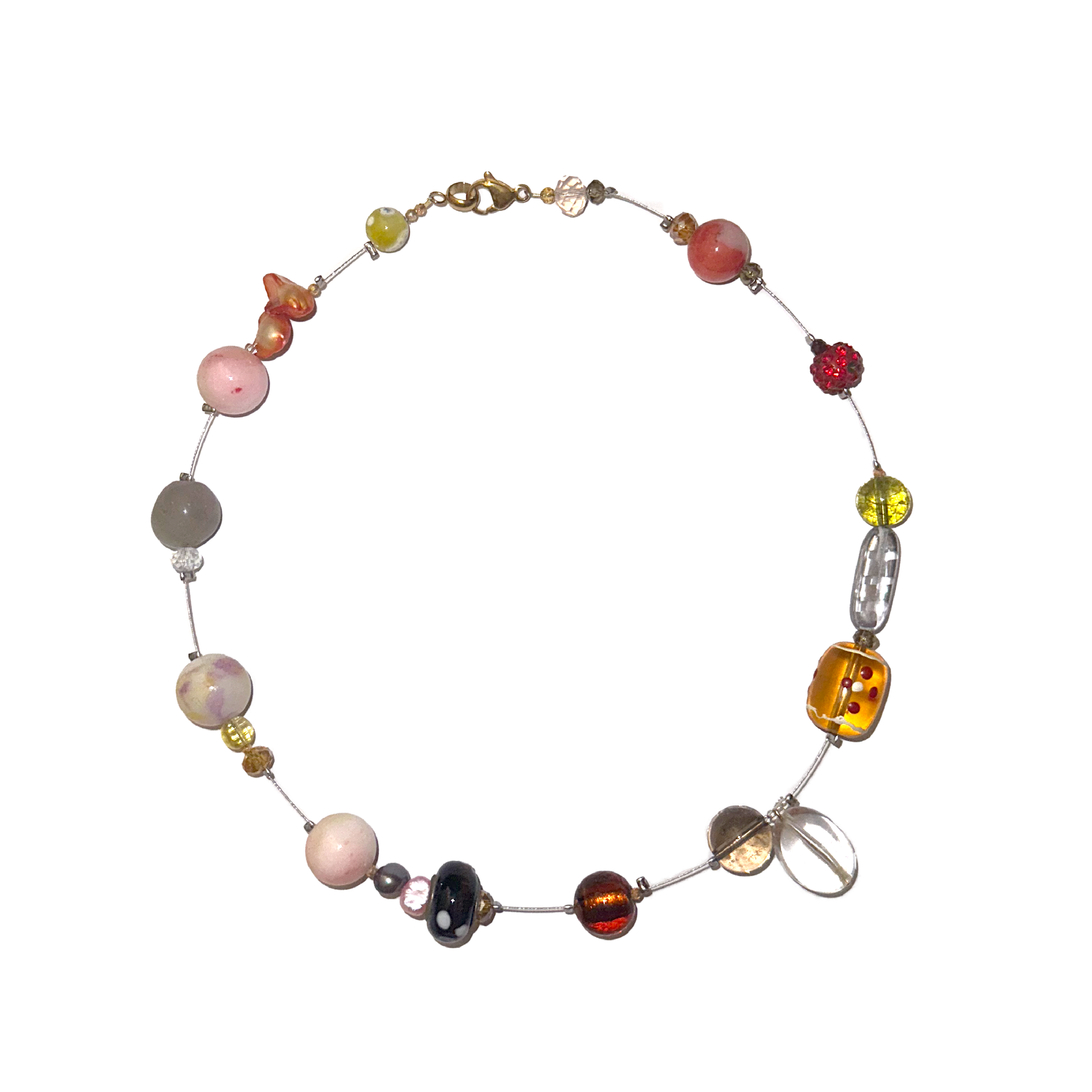 Wired necklace! Made out of crystal beads, freshwater pearls, seed beaded and stainless steel golden clasp.